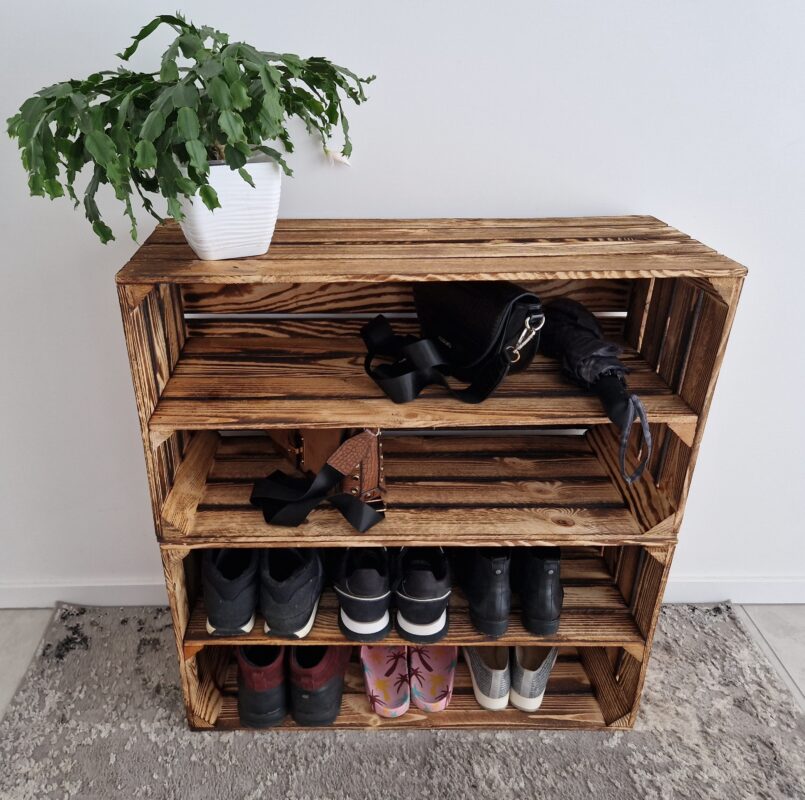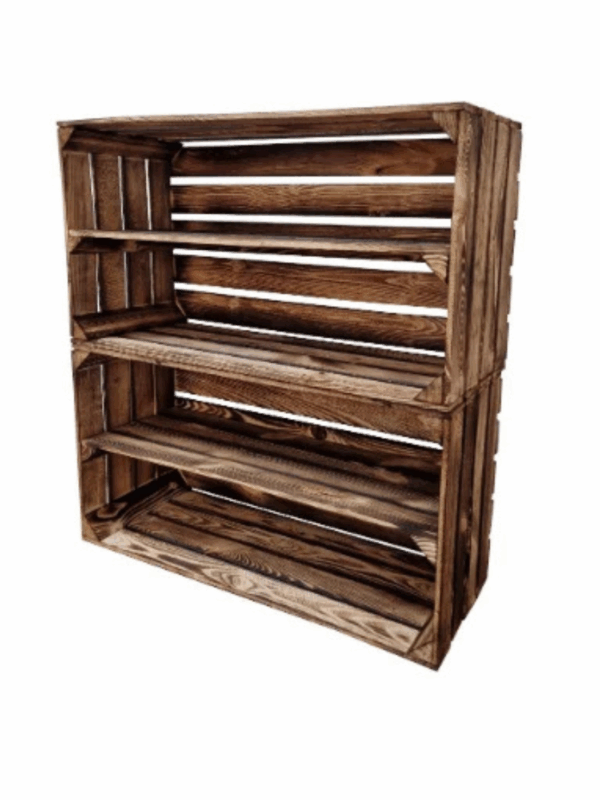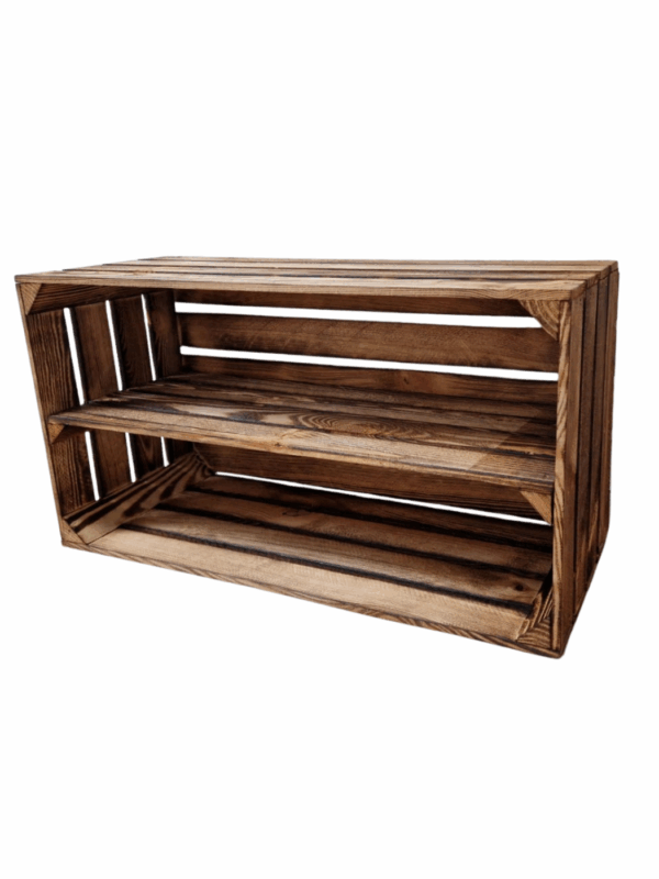 Wooden crate with 2 shelves 50×40×30 – Burnt & Natural