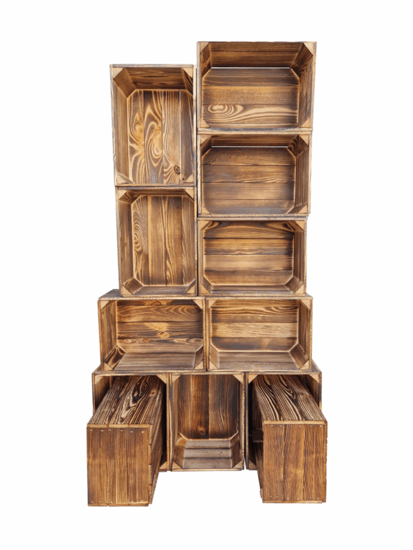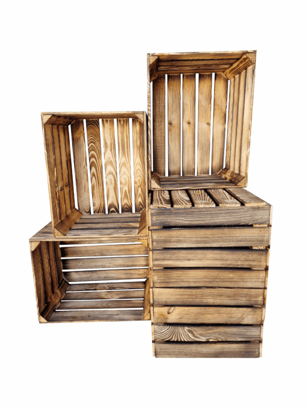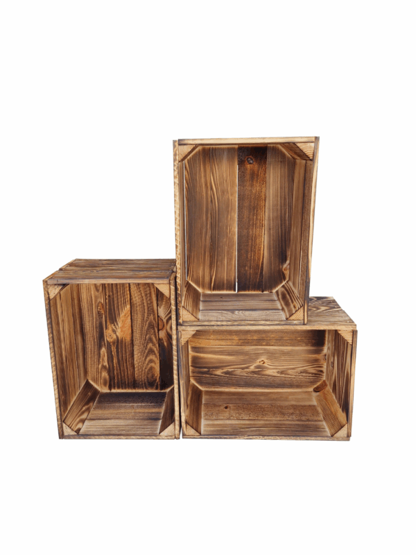 Wooden crates 35×25×19 – Burnt effect & Natural