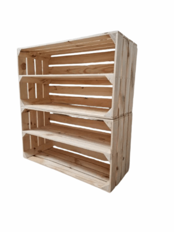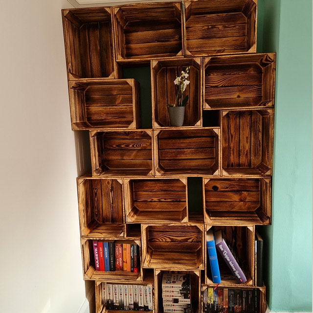 Wooden crates with long shelf – Natural & burnt effect & Natural