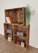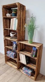 • Fully assembled burnt wooden crates with shelves – no tools or installation required