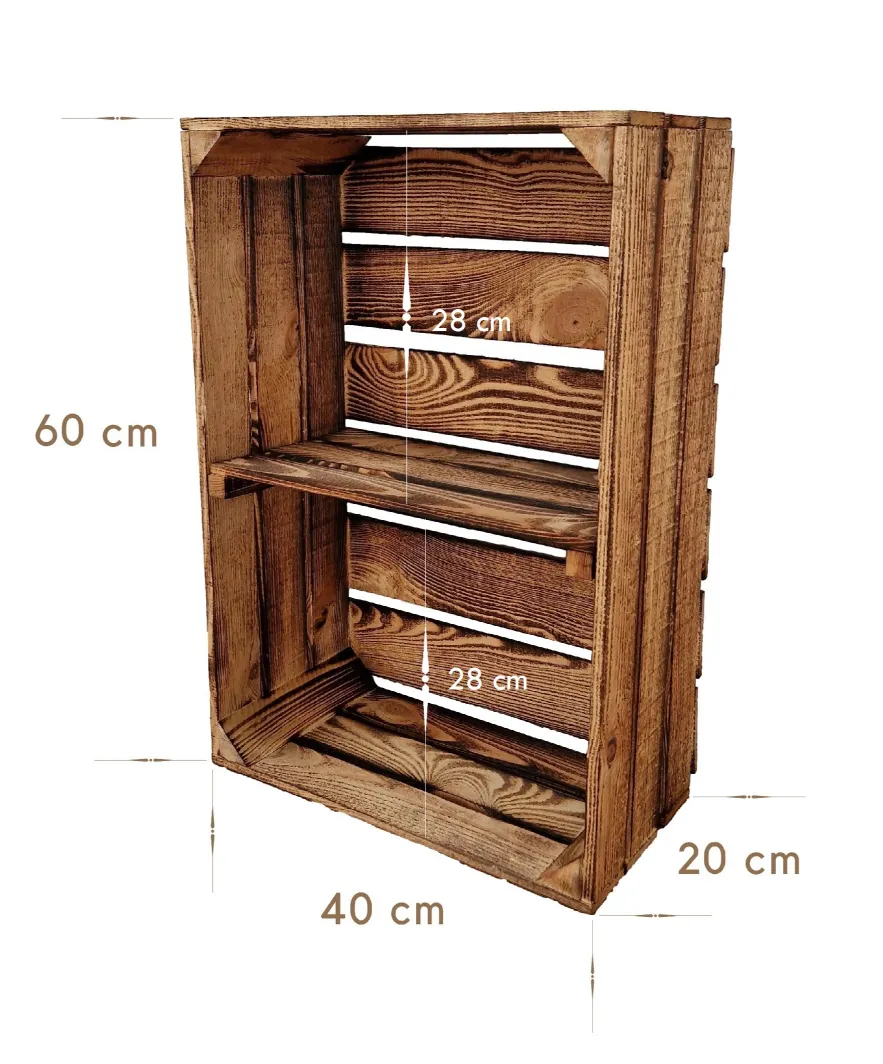 Large Wooden Crate with Shelves 60x40x20 cm for Storage