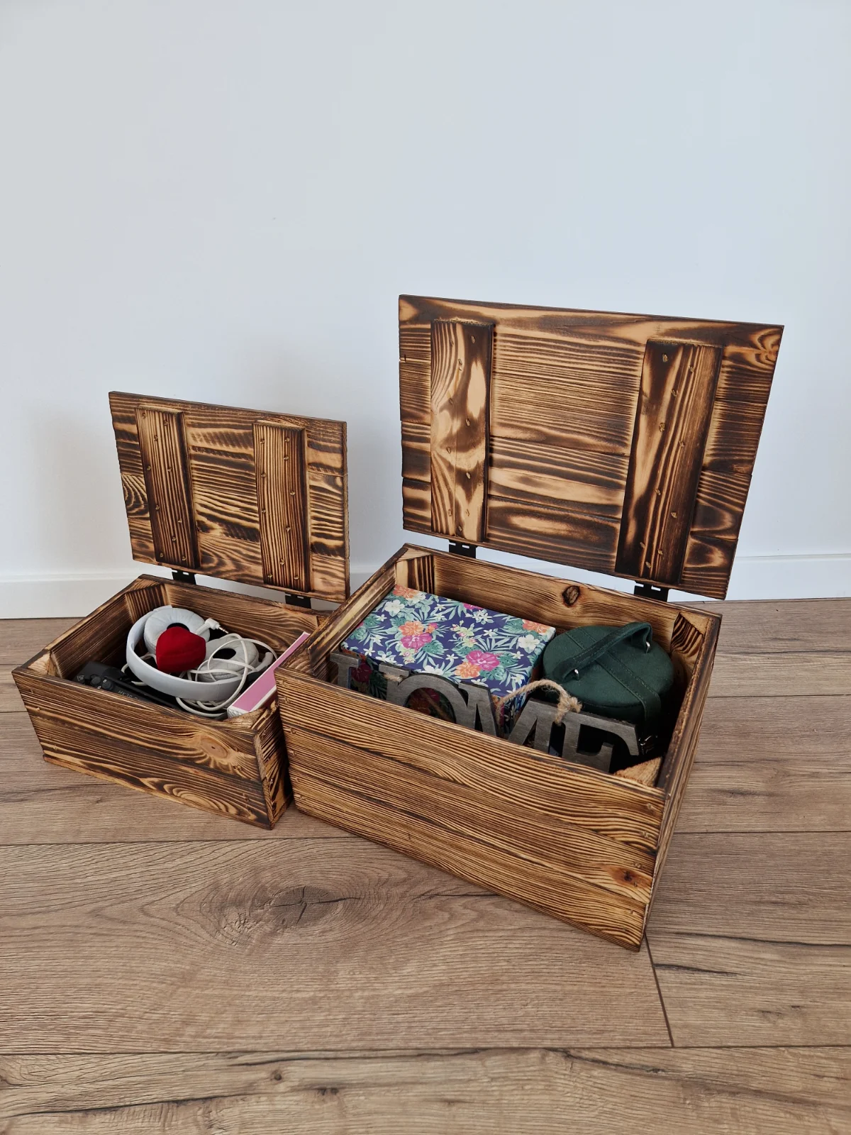 Set of 2 wooden crates with lid – Natural & burnt effect