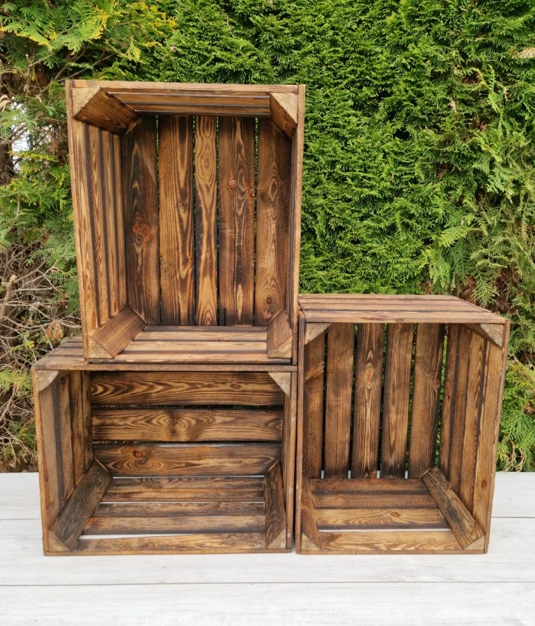 Be the first to review “Set of 3 Burnt effect wooden crates 50x40x30”