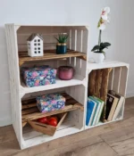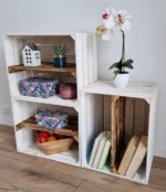 • Stylish wooden crates with shelves,