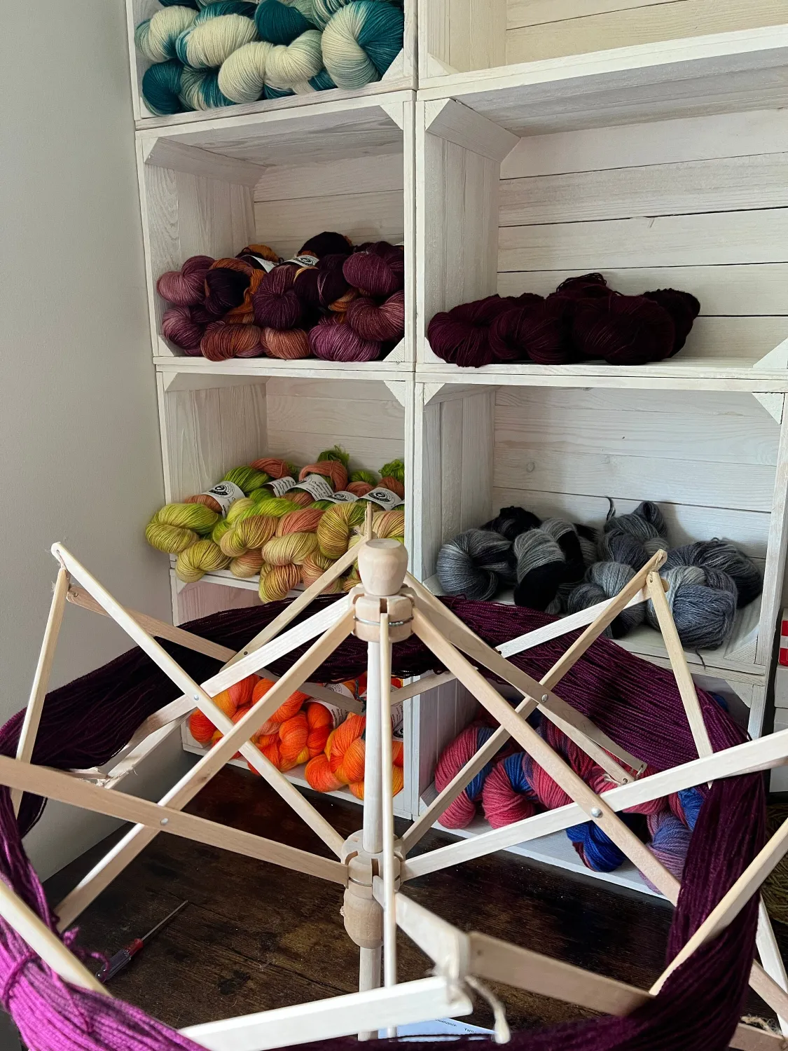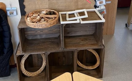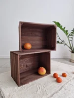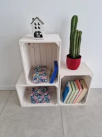 A practical shelving solution made from classic wooden crates.