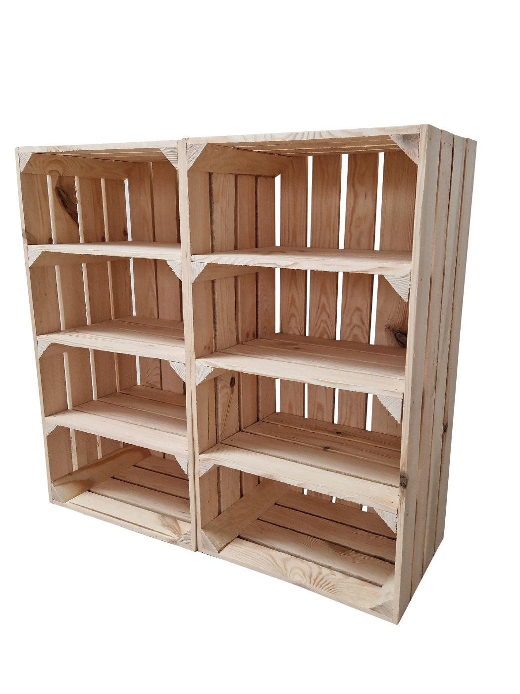 Wooden crate with up to 4 shelves – Burnt Effect & Natural