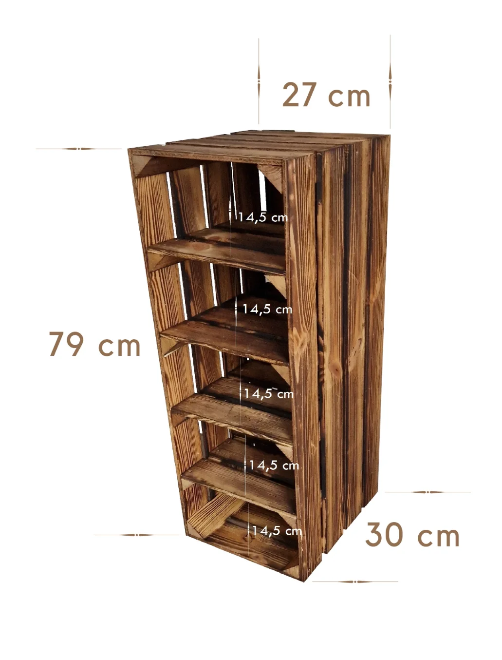 A practical shelving solution made from classic wooden crates.
