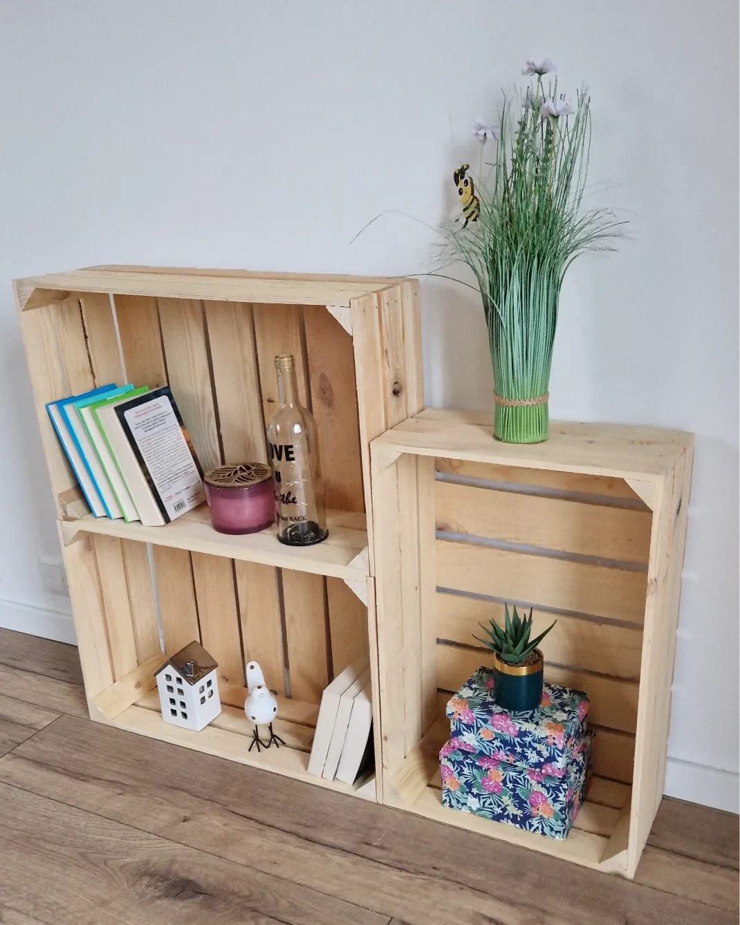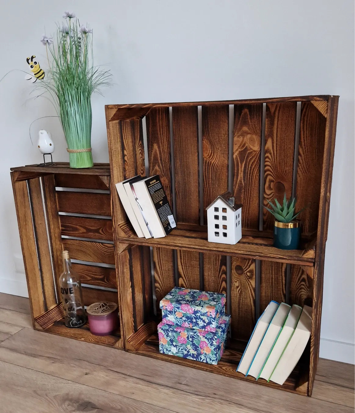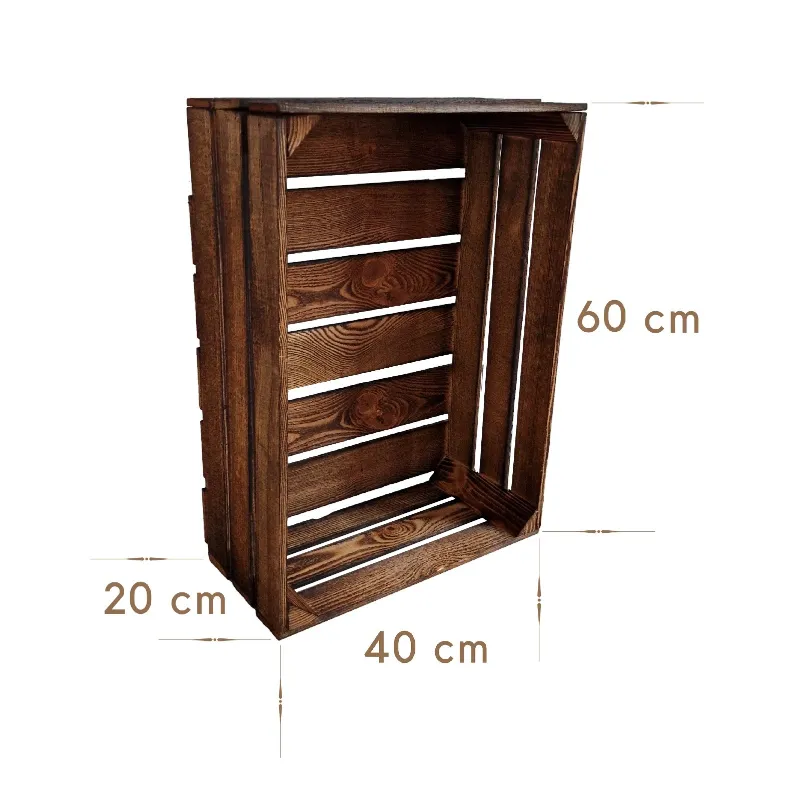 Wooden Storage Crate 60x40x20 cm – Natural or Burnt Effect