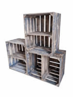 Funkcjonalne regały zbudowane z drewnianych skrzynek.